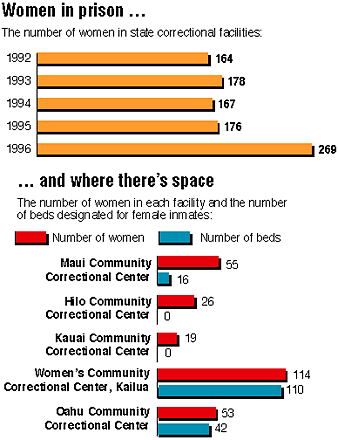 Right now, 269 women are incarcerated in Hawaii, although the state has beds for just 221. That's up nearly 53 percent from 176 female prisoners a year ago. "It just exploded," said Kauai warden Neal Wagatsuma. "Every facility is scrambling to find space."