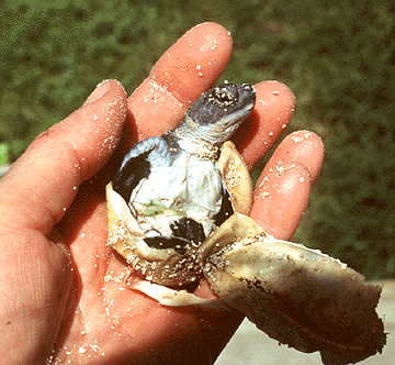 Ghost crabs, also called sand crabs, chase and grab the little hatchlings, crushing their skulls with powerful pincers. After the kill, the crab ladles out the guts of the beheaded turtle through the hole in its neck.