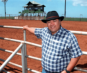 Lyle Otsuka, a Molokai Ranch officer shows the rodeo