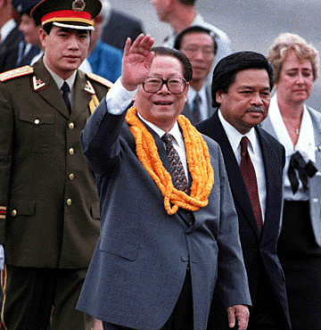 Yesterday was a tightly scripted visit for the 71-year-old Jiang, leader of the world's most populous country.