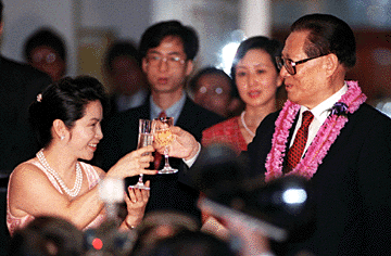 Last night, heading into dinner with Gov. Ben Cayetano, Jiang's motorcade had to drive through about 100 protesters lining the fence outside Washington Place. They yelled into bullhorns, crashed cymbals and blew whistles throughout the dinner, held on the mansion's lanai.