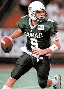 At Utah in 1990, Jason Elam had field goals of 22 and 50 yards and quarterback Garrett Gabriel tossed a 73-yard touchdown pass to slotback Jeff Sydner as UH won, 19-7.