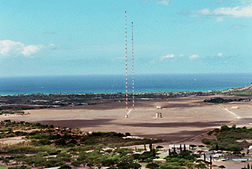 Star-BulletinTwo antennas of the Navy's communication systems at Lualualei stand 1,500 feet over the Leeward Coast as the state's highest structure.