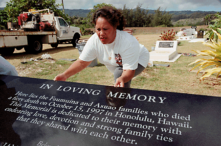 Star-BulletinAs Elaine Faumuina walked past the graves of her seven family members, she saw their smiles, felt their hugs and kisses, heard their laughter.